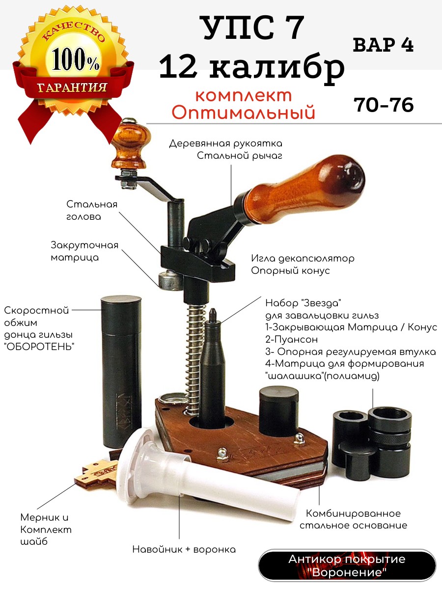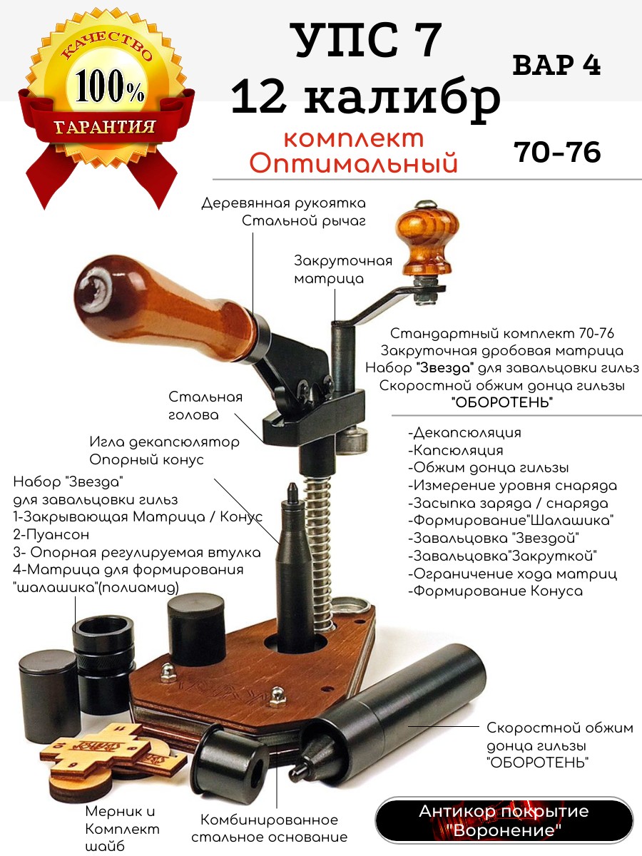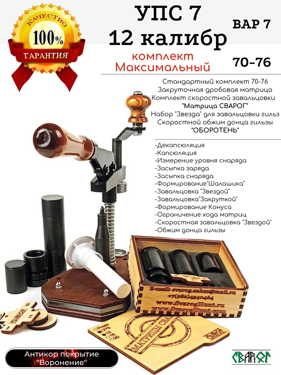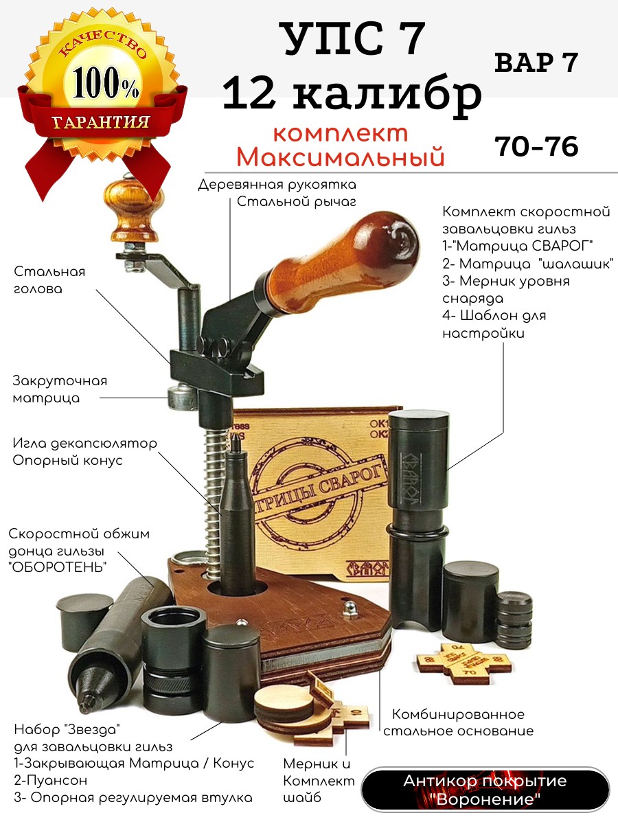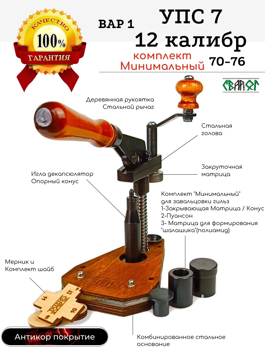 Универсальный прибор СВАРОГ для снаряжения патронов 12/16/20 калибра. Доступны 7 вариантов комплектации. Комбинированное стальное основание и стальная голова. Детали пресса и матрицы имеют защитное антикоррозийное покрытие (воронение)**